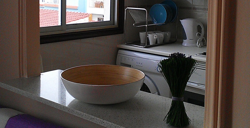 Современная кухня оснащена духовкой, плитой, большим холодильником, стиральной машиной, чайником и всей необходимой посудой.