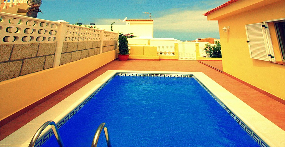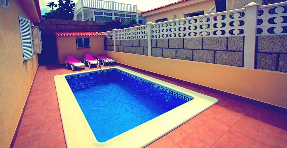 Частный бассейн с ночной подсветкой.