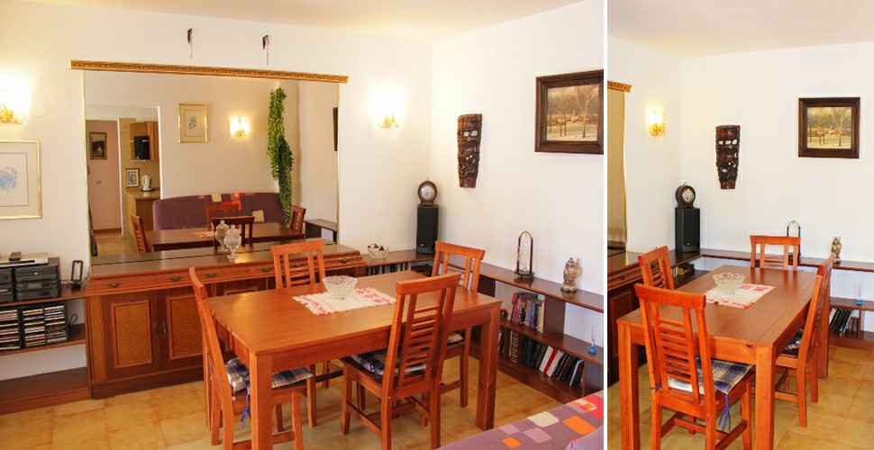 Есть большой диван-кровать, так что в апартаментах могут комфортно разместиться 4 человека.